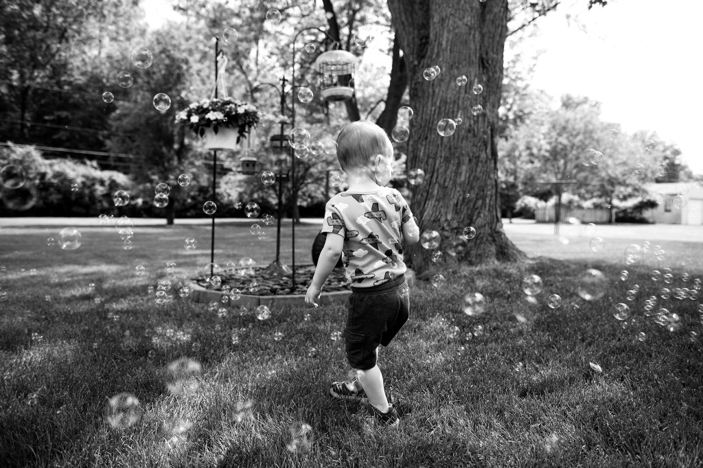 He calls out to me from the patio, “Can I do my bubble machine?”