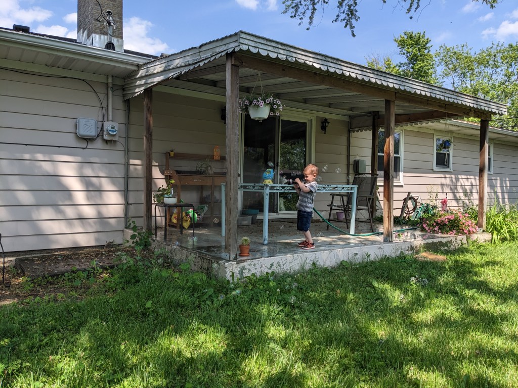 I pull the grass out of Phoebe’s mouth while Walter runs around the yard, finding the best sticks and pouring water on the unruly plants growing along the side of the house. Just a few summers ago, he was the baby sitting on the blanket with me, or, more likely, crawling away across the yard to go exploring. Now he’s a little boy who can put on his blue and orange sandals (and even fasten the Velcro strap) all by himself.